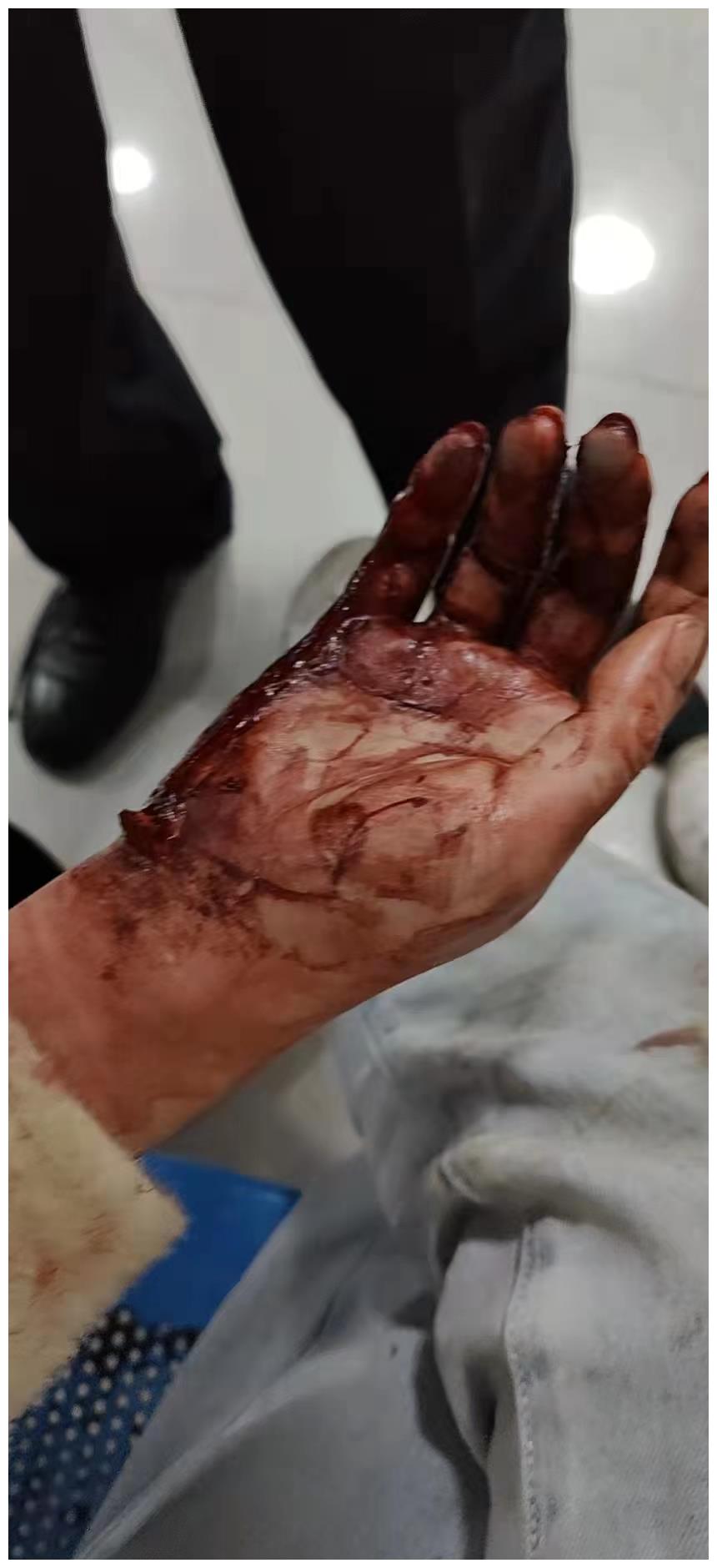 杨女士右手被啤酒瓶碎渣割伤,血流不止
