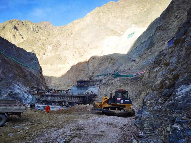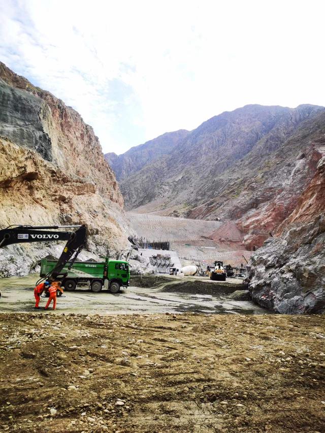 距中吉边境不到50公里的新疆阿克苏地区大石峡河谷,盘山路上施工车辆穿梭往来,陡峭山体上建筑物攀缘直上,山谷内机器轰鸣声此起彼伏,数百台车辆及机械设备工作紧张有序、有条不紊,呈现出一派热火朝天的施工场面。