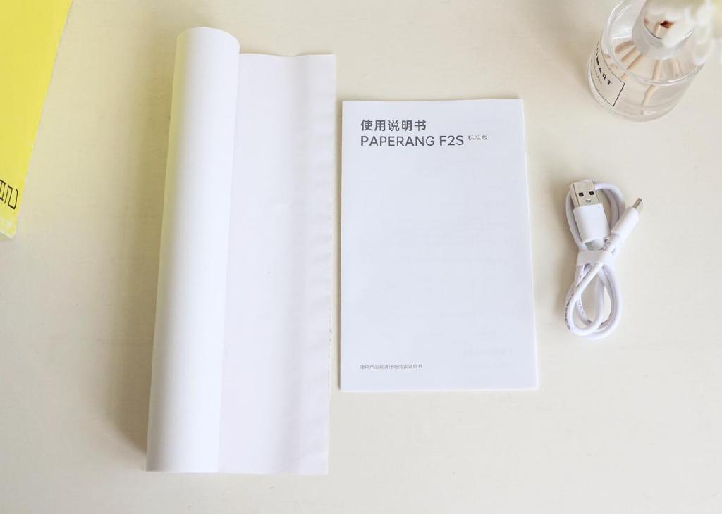 随机配件主要有一卷A4宽度的卷状打印纸、C口数据线、纸质说明书。
