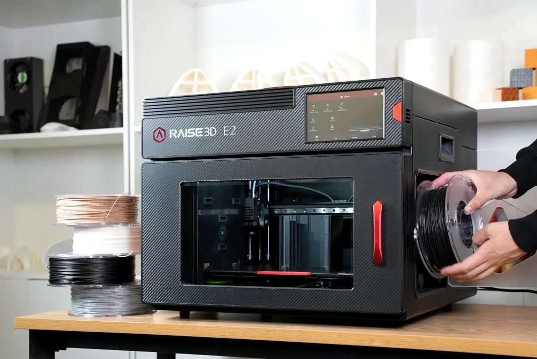 从功能设计来看,E2具有双喷头挤出系统,触摸显示屏,支持连接WIFI,可以搭配Raise3D自主研发的切片软件ideaMaker以及云端管理系统RaiseCloud使用,无论是办公场所或者高校实验室,它都能满足研发的工作需求。从外观设计来看,与小型桌面级365bet在线体育投注网_365bet在线体育_365被限制如何解决 相比,E2虽然具有更大的打印空间,但方正简洁的设计也不太占用过多的空间。全封闭式的设计减少了打印时产生的噪音,也能支持更多需要高温打印的材料。值得一提的是E2的料仓,它被设计在了机器的侧面,凹进去的,不仅方便打印还节省了不少空间。