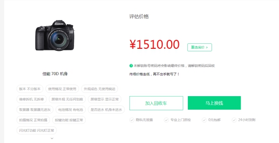 其实,现在互联网如此发达,可以不用再去线下和商家讨价还价,斗智斗勇了。在想换换回收这种平台进行数码相机回收,先预估价格,觉得合适就寄过去,不合适就算了,还是相当方便的。