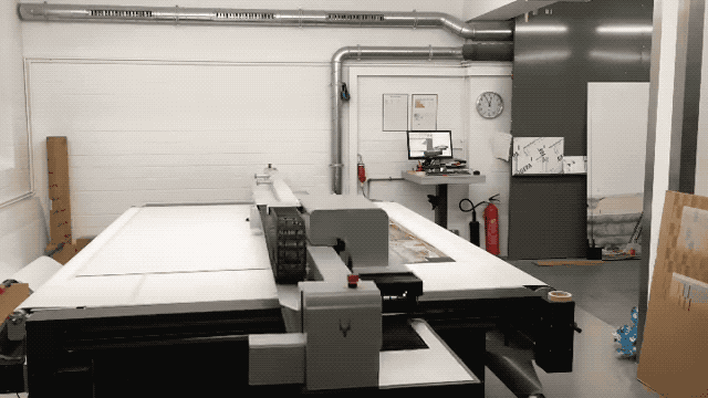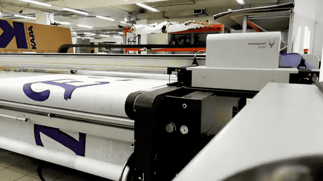 除此之外,swissQprint还具备打印过程中对于超大幅面材质的自动传输功能,配备延展平台,无需人员参与即可自动移位,且机器本身具有精准定位系统,材料移动后可快速找准位置开始打印。