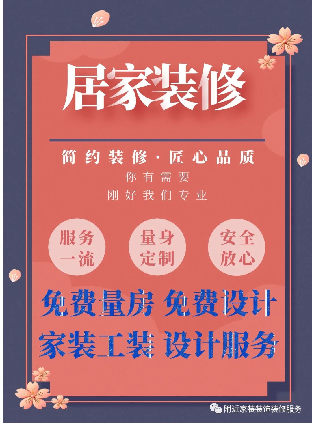 【服务内容】1、各种店面,店铺装修,别墅,洋房,居家装饰、办公房,厂房装修。2、二手房翻新或者简装、厨卫结构改装、水电安装。3、批腻子粉,墙面找平,喷或者刷涂料、老公房墙面铲除,翻新。4、包门套、窗套、制作各类衣柜、办公桌、展示柜。5、铺地板、做厨柜、吊柜、地柜、隔断墙、吊顶造型、屏风制作等。6、厨房卫生间防水工程,水路安装,弱电工程制作,安装龙头,洁具,毛巾架,开关,插座,灯具等。7、铺贴地砖、瓷砖、大理石,砌砖墙,粉刷。8、毛坯房简单装修,内外墙粉刷,吊顶隔断;旧房翻新等。注:不管是大事小事,只要您一个电话,我们马上上门为您服务,为您解决燃眉之急。