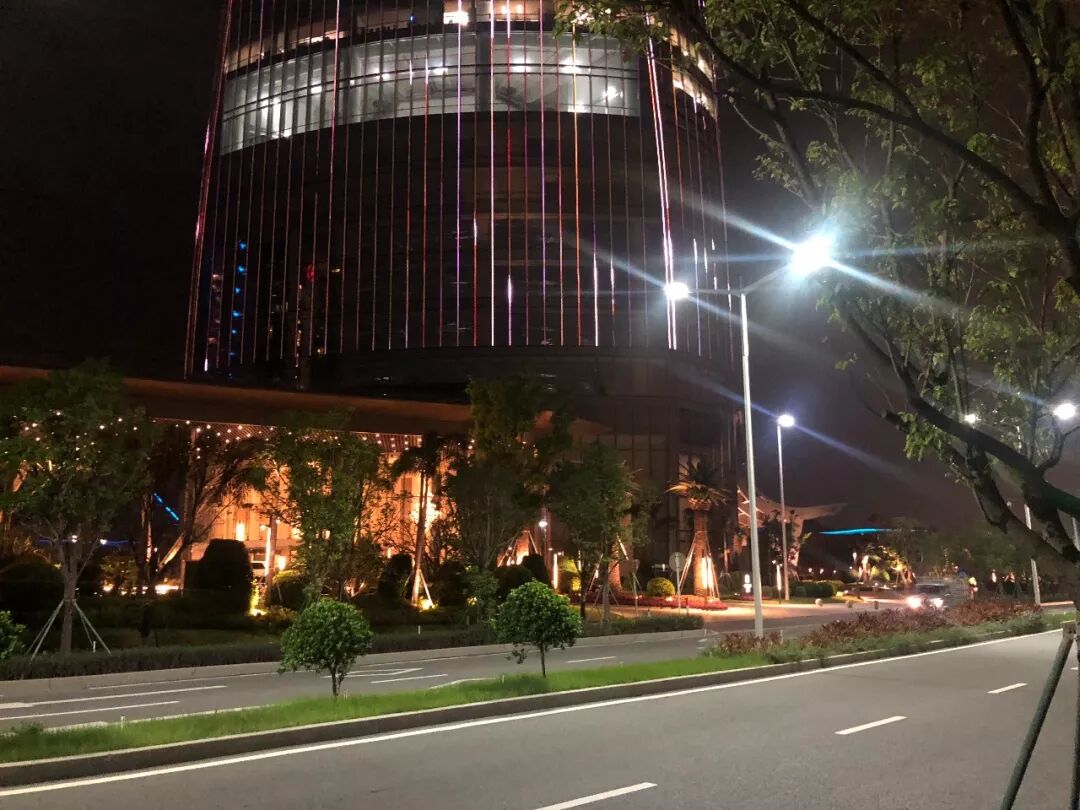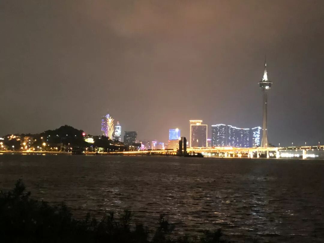 珠海的朋友热情好客,弄得我不得安宁,死活要带我去中山吃饭。晚上又是碰上塞车,坐了2个半小时才到。不过也好,带来的不仅使肚子饱餐一顿,眼睛也没闲着,可以好好看看珠海的夜景。这座城市突然发现也像大上海似的,越来越时尚,越来越现代化。尤其是醒目的第一高楼,灯光闪烁,与对岸的澳门赌场遥相呼应!从侧面看,它像一个啤酒瓶,似乎发出一种声音,与世界举杯同庆!引领着这座城市,挑战新高度,走向新文明!