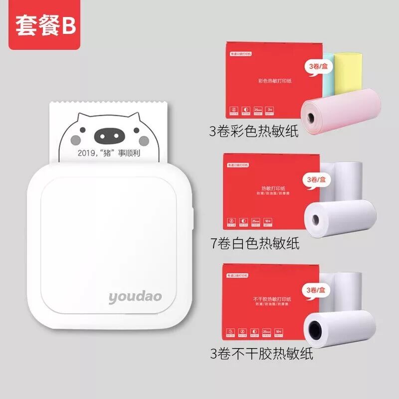 B套餐:有道口袋365bet在线体育投注网_365bet在线体育_365被限制如何解决 +4盒热敏纸组合套装(含2盒白色热敏纸、1盒彩色热敏纸、1盒不干胶热敏纸,共13卷(包含主机自带白色热敏纸1卷)),原价312.6元,团购价263元
