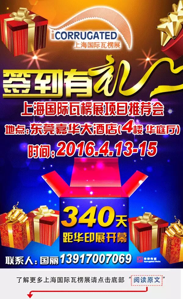 From15th, April,on the fourth floor of Regal Palace Hotel Dongguan, Guangdong,Icorrugated Media invites you to attend the projectrecommend of 2017 Shanghai International Icorrugated Expo. The staffs of Icorrugated Media will be present to provide you with the professional communication and booth contract service. You will be present with secret gifts.