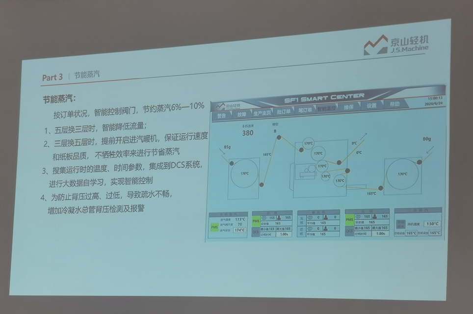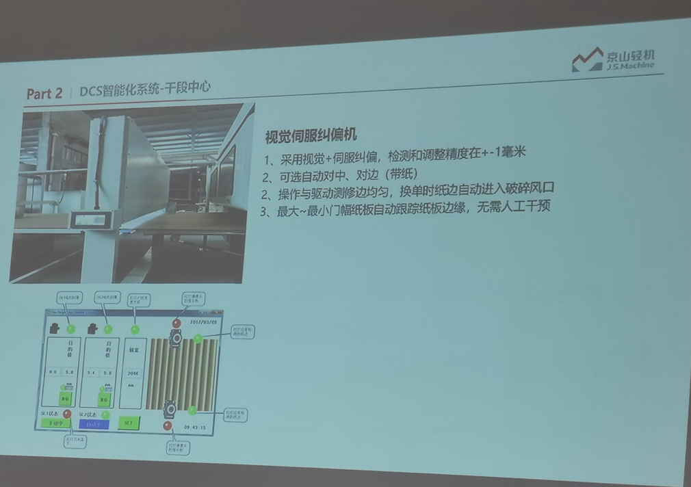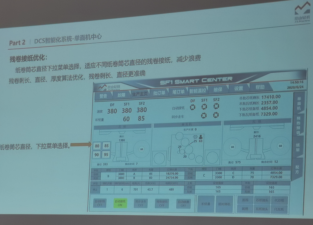 在分享京山瓦线一键上纸短单换单稳定性等等的智能化功能的时候,京山的彭工向来宾们重点强调了京山瓦线开机即生产的强大优势。