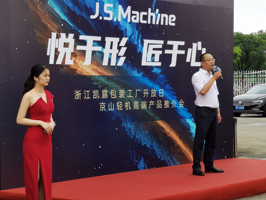 新仓镇领导在致辞中说,凯露包装属于当地印刷包装行业的龙头企业,发展潜力巨大。尤其是近两年和京山轻机产生了设备合作关系之后,发展势头更是突飞猛进。他以在端午佳节平湖市龙舟比赛中,新仓镇以凯露包装的员工为班底的龙舟队,首次参加比赛就获得了冠军为由头,祝所有来宾企业都一往无前,争做冠军企业、龙头企业!