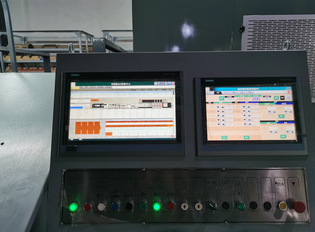 多功能间断机、1S分压机、高速横切机、高速堆码机配合控制系统,实现复杂订单的自动变速、自动巡航、自动换单,保证干部系统高效生产。