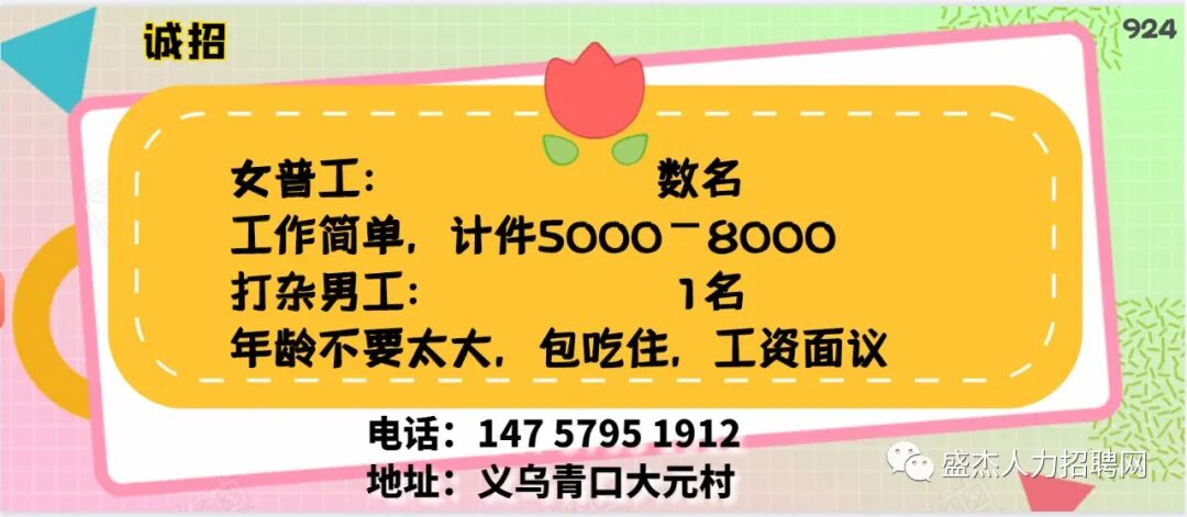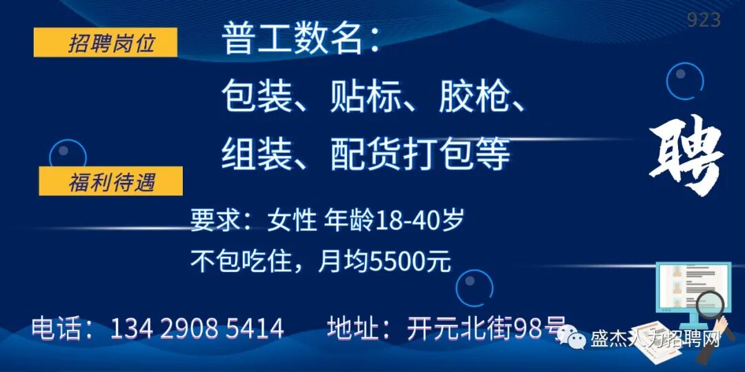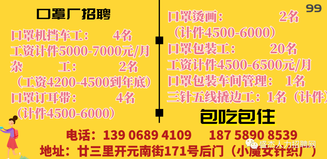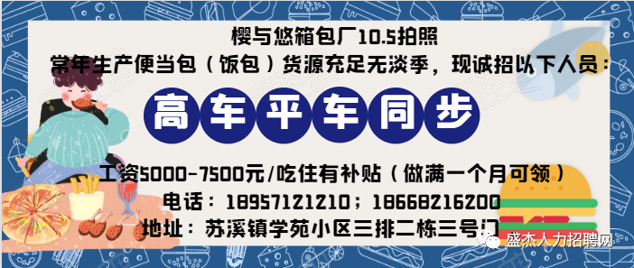 女性,年龄45岁以下,工资3500-4000,包吃,房补500元/月。