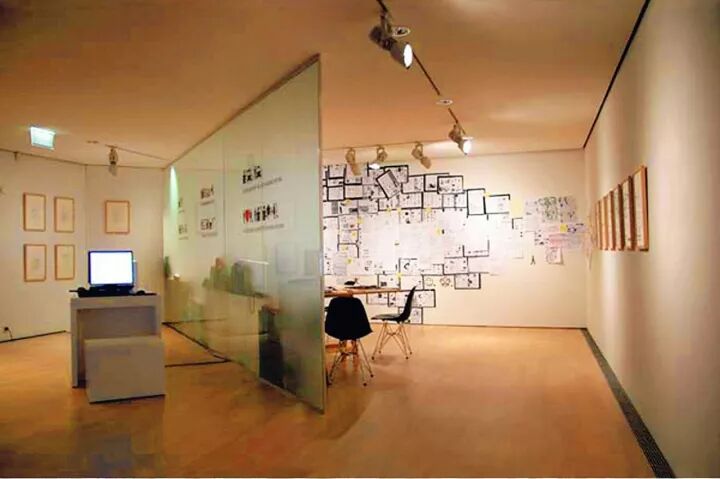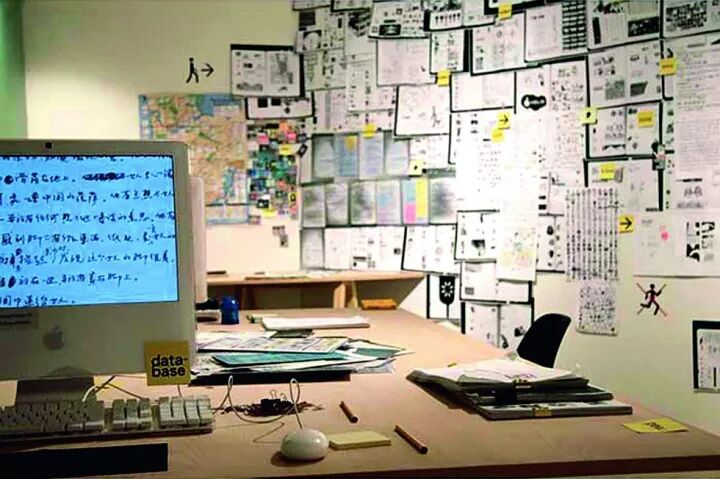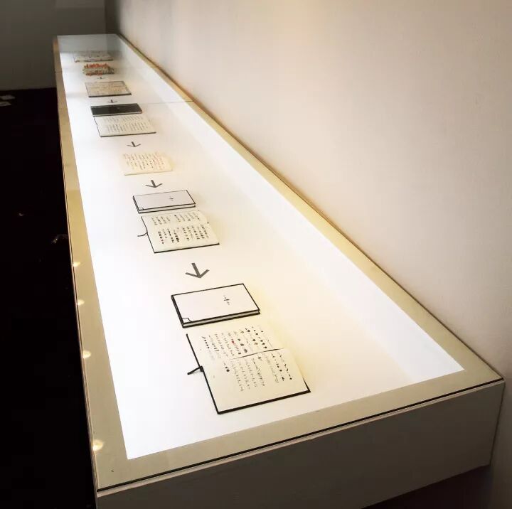 徐冰的地书项目工作室场景以是实物还原的方式呈现了此项目的持续创作状态。从2006年在德国斯图加特美术馆(Kunstmuseum Stuttgart)、2012年台湾诚品画廊及2012年上海沪申画廊的展览中,工作室场景的展示了此项目的收集、整理、试验、实践的过程,作为地书项目的发展过程的最好的物证场景,工作室场景的还原不但让观众感受到项目进行过程,也体现了此项目的即时性及不间断性。