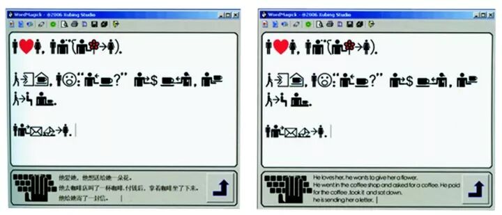 人类超越文字障碍的理想和努力从来没有停止过, 但只有在地球村形成的条件下才能出现真正的契机。上述诸多现象表明:一种以象形为基本模式, 超越现有文字的新的表述倾向,在这种共同愿望的驱使下日渐明确地显现出来。我意识到这种倾向和它在未来的可能。
