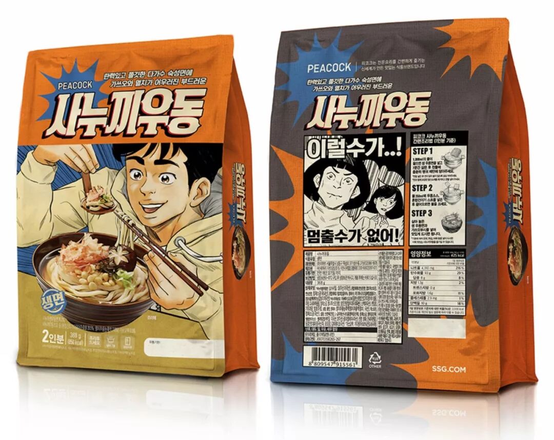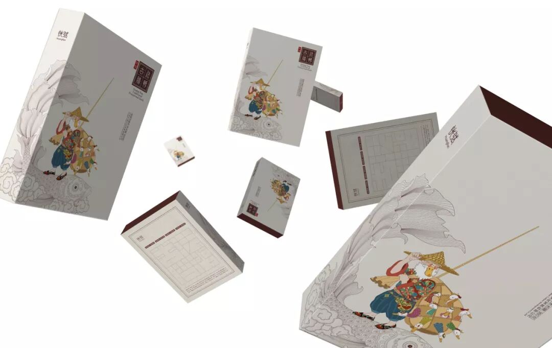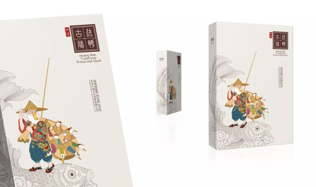 这款包装上的形象是一位背着网兜的养鸭人,鸭子透过网兜的洞呼吸。养鸭人的年龄反映了鸭子的传统手工养护过程,与消费者产生情感共鸣。与保存鸭产品的大多数包装不同,它使用传统的中国插图来吸引年轻消费者。包装由折叠盒中的牛皮纸制成,环保、成本低、可快速生产。除此之外,包装也不需要胶水,这节省了装配时间。