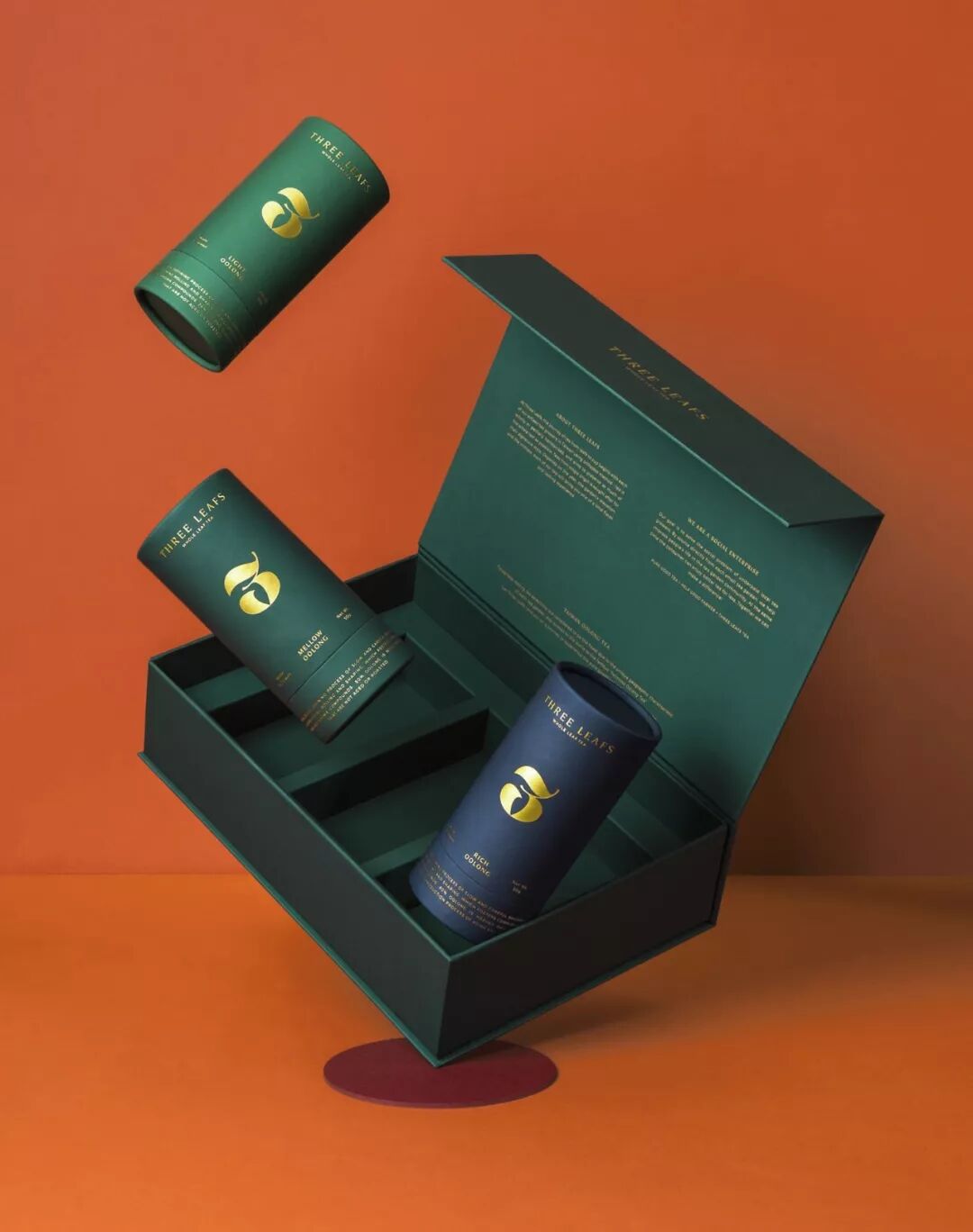 三叶(Three Leafs)品牌旨在向世界介绍最好的台湾茶。设计师选择了一个国际数字符号作为该品牌的主要logo,并且传达有关三叶的品牌理念。三枚叶片的形状被框成3符号,树叶和数字3完美的组合在一起。圆润的叶片轮廓和延伸的枝叶描绘了三叶的精神,同样也表达了三叶使用整片茶叶作为原料的优良品质。三叶分别在三个的茶盒中展示台湾最优质的乌龙茶。