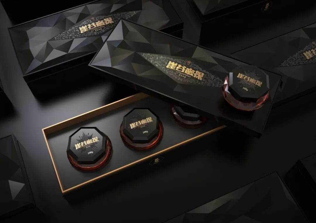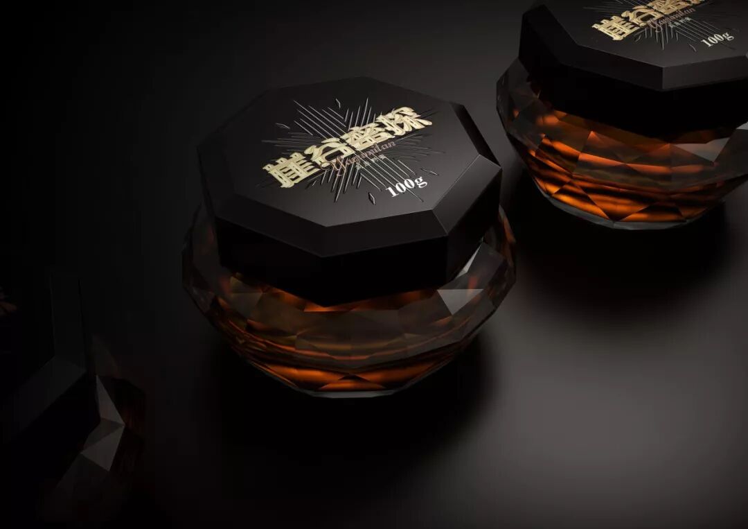 崖谷蜜探是中国最稀有的野生蜂蜜之一,设计师将瓶子切割成钻石的样子,为的就是向消费者传达产品的高品质。同时,外部的包装也看起来像是起伏的山谷,山谷之间的间隙形成了指南针的形状。