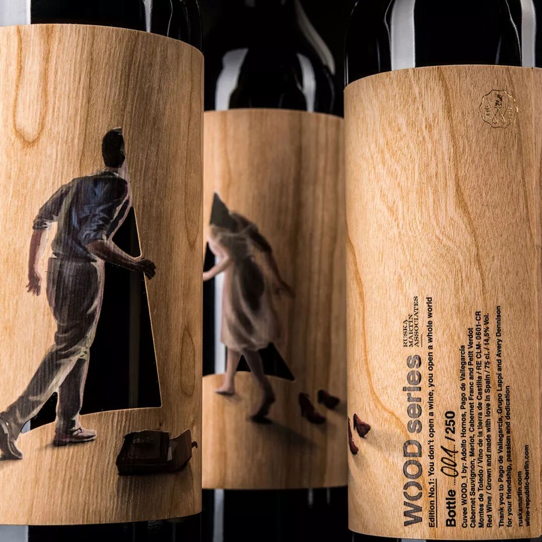 这款包装上的图案凸显出人们对葡萄酒的热情。设计师Ruska, Martín想要使用特殊的包装材料来反映出葡萄酒的年份,因此他选择了实木。葡萄酒是探索,你打开的不仅仅是一瓶酒,而是一个新世界。这是伍德系列葡萄酒想要传达给每个人的理念。当人们抛弃一切杂念,让自己沉浸于神秘的世界,就会发现葡萄酒的独特美感和深度。你可以在外面感受到,在酒瓶内正在等待着你的是一种在法国橡木桶中酿造出的独特的葡萄酒。
