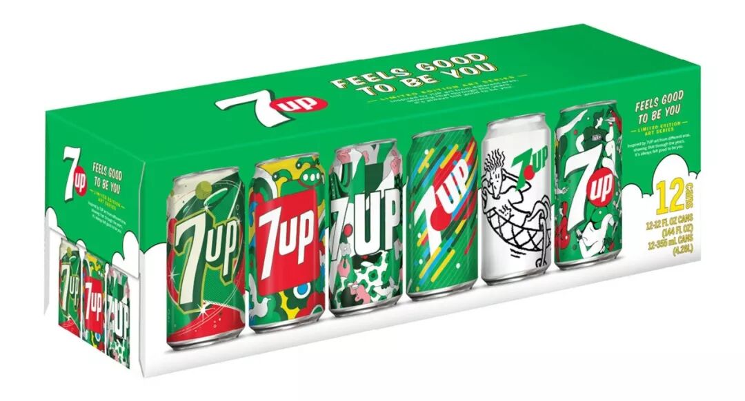这款七喜的复古罐在美国境外销售,旨在以大胆和现代的方式展现品牌的历史。百事公司为品牌创造了一个视觉丰富且引人入胜的平台,来讲述一个独特且完整的七喜故事。每一件作品的灵感都来源于几十年来七喜的人文、文化和审美。这六个纪念易拉罐的设计是与不同艺术家共同创作的,以独特的风格和视角突出七喜古怪和原始的本质。