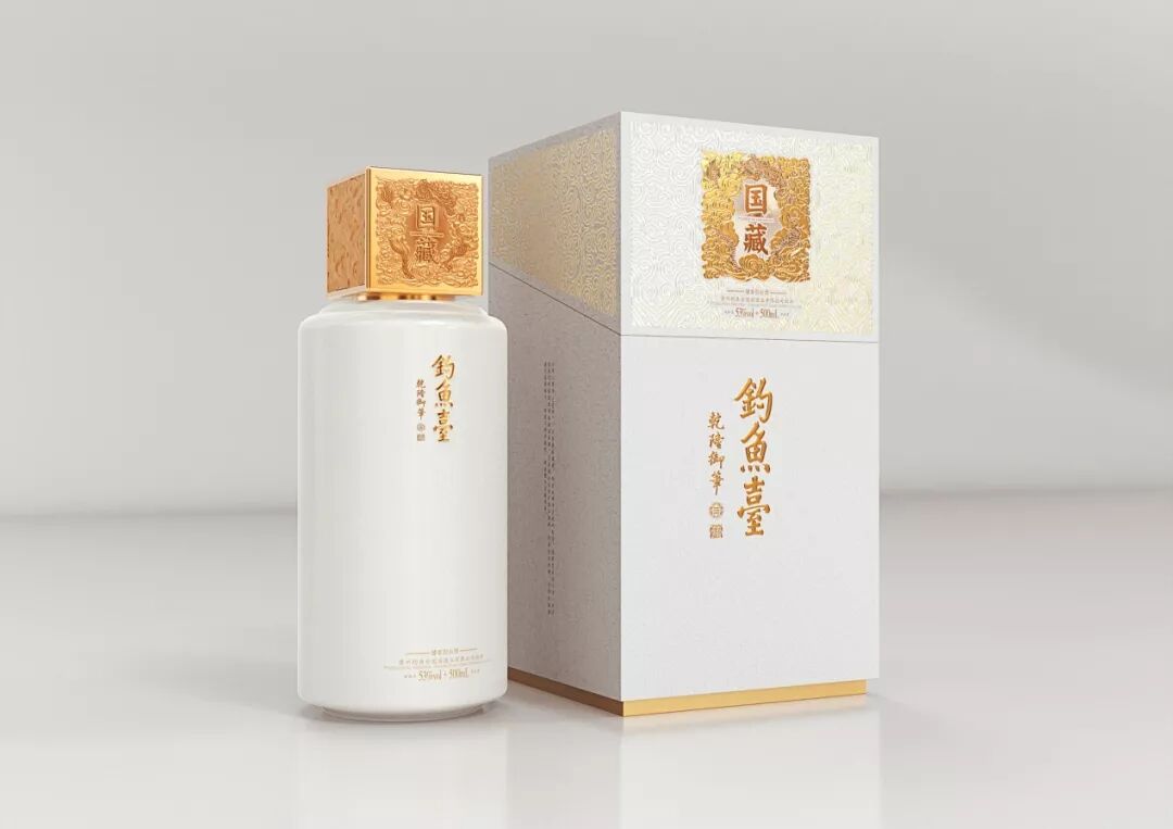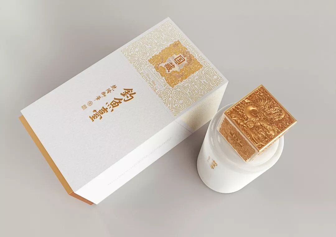 本包装适用于国宾宴会厅供应的高端中国葡萄酒-钓鱼台,此酒是中国国家领导人为尊贵的外宾服务的葡萄酒,因此它代表了中国的礼仪形象。龙纹是中国古代尊贵的符号纹饰,而被选为本包装的主要元素。设计采用亦繁亦简的对比方式; 瓶盖非常华丽,瓶子却非常简单,这种对比传达了严肃和独到的中国风格。