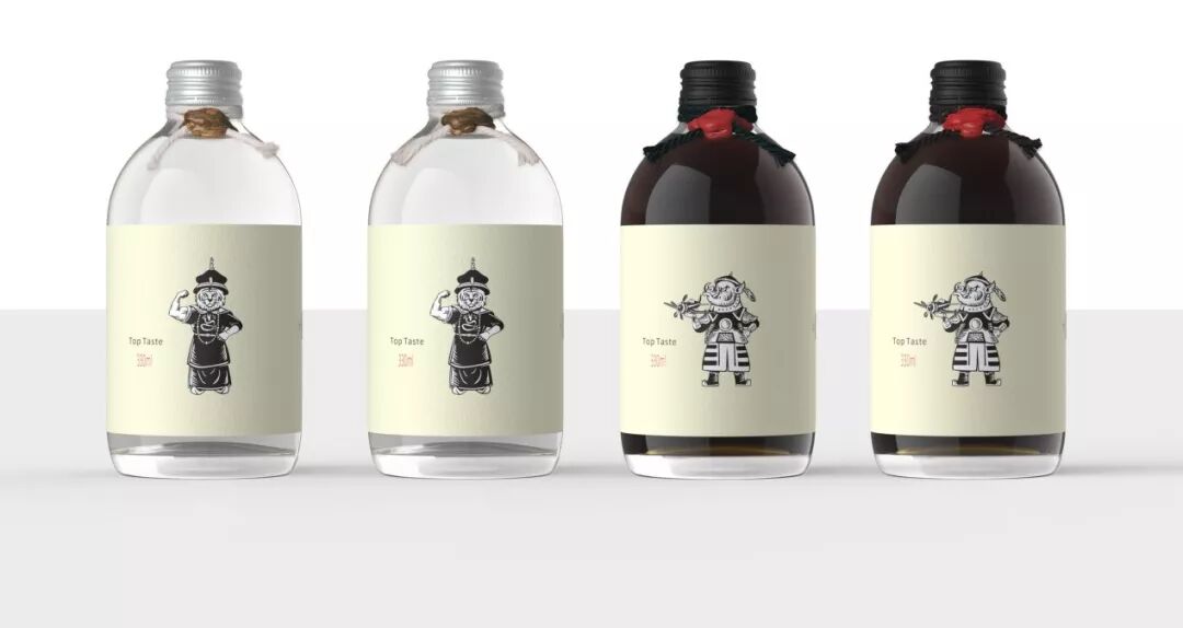 该产品是醋的包装设计。大赏醋 调味品 ,品牌名称具有——宫廷气息的玩味儿,味道大赏的风范儿。既符合调味品的格调,又具有创新突破性的品牌调性。紧扣大赏品牌调性;超现实写意,以中国传统宫廷服饰的形式呈现,对老虎、野猪动物形象拟人化。虎虎生风、虎里虎气,赋予视觉画面极高的趣味性和独特性,视觉带入空前新鲜的领域。同样,该设计也代表了中西方风格的现代融合。