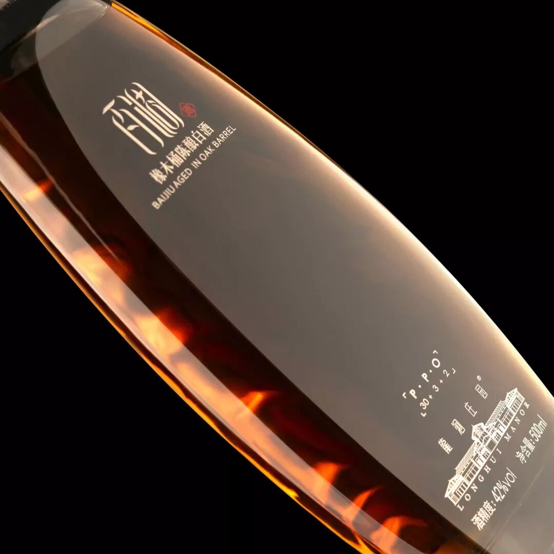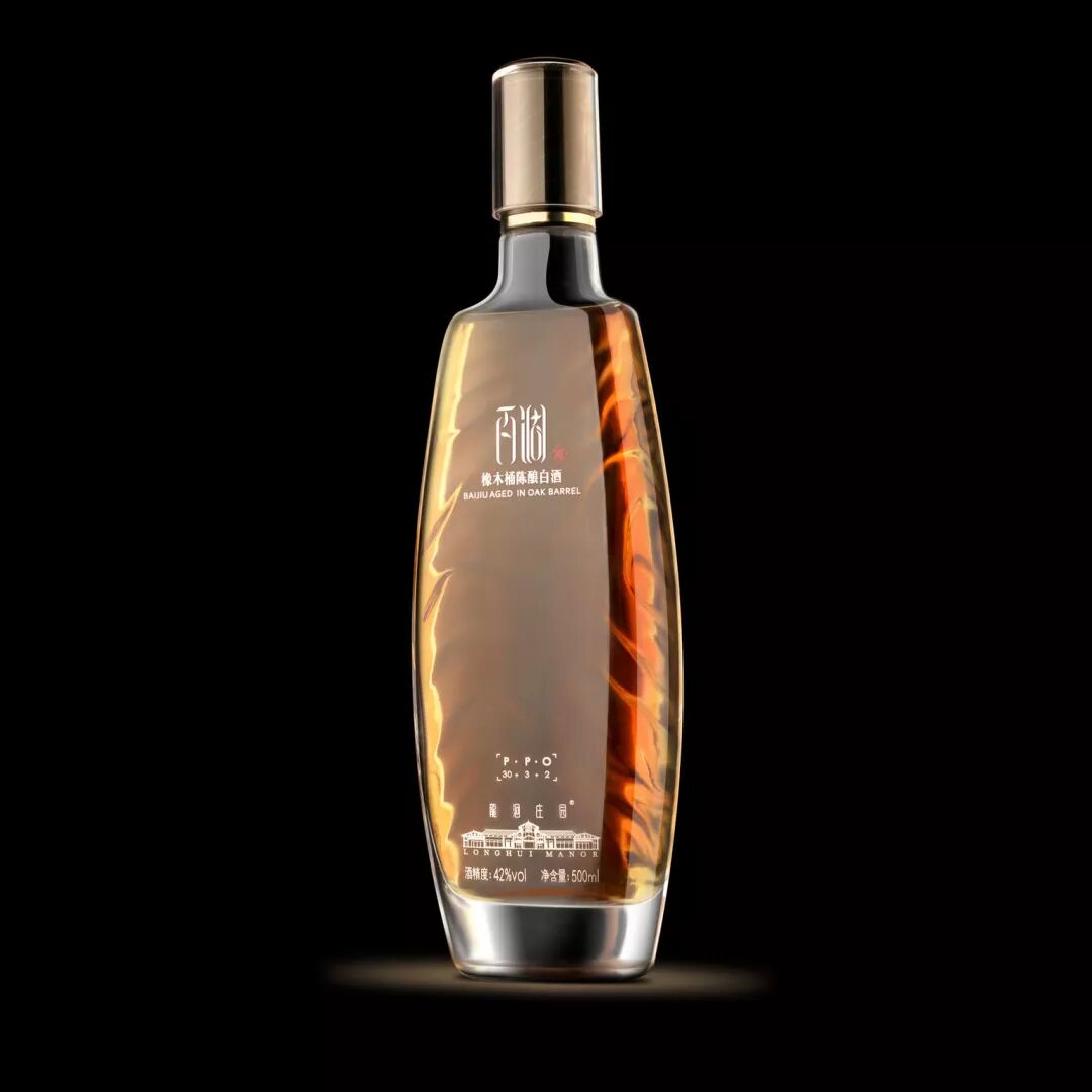 橡木桶陈酿白酒代表了中国传统蒸馏艺术的最新展现方式。通过改变原始橡木桶的形状,使瓶子的形状设计与中国佛教徒崇敬的观世音菩萨使用的容器相似。瓶身的正面是光滑的,背面有木制雕刻和玻璃装饰,给人一种自然而真实的触感。