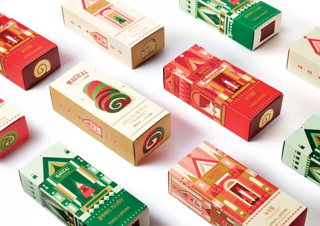 该产品是多乐之日食品品牌于2017年发行的圣诞限量礼包,它表达了魔法圣诞的感觉。包装的主要图像是圣诞老人、雪人和一个躲在几何图案后面的小女孩。红色和绿色是设计的基础颜色,金色也巧妙的用来装饰城堡。当蛋糕包装堆叠起来的时候,神奇的城堡就会显现出来给人带来愉快的心情。