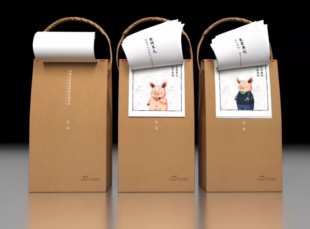 成都着名美食腊肉向来就是受游客欢迎的伴手礼,该包装为成都腊肉专卖店设计。由于该产品是作为礼品销售,因此强调其独特的价值是包装的重点。该礼品套盒使用漫画的形式讲述了猪叔叔的故事并介绍了腊肉的生产过程,既特别又有趣。包装的设计非常新颖,猪叔叔的故事对于年轻人和老年热来说都很有趣。