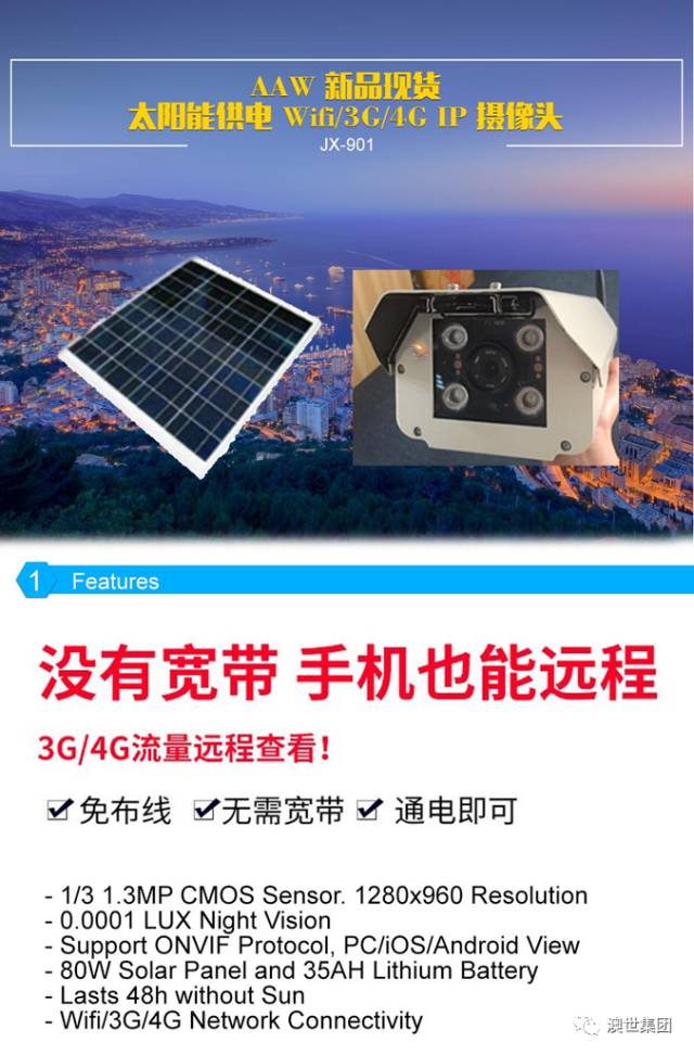 新推出太阳能供电的视频监控系统,解决无电力供应区域的建筑工地、野外、或大农庄的视频监控问题!