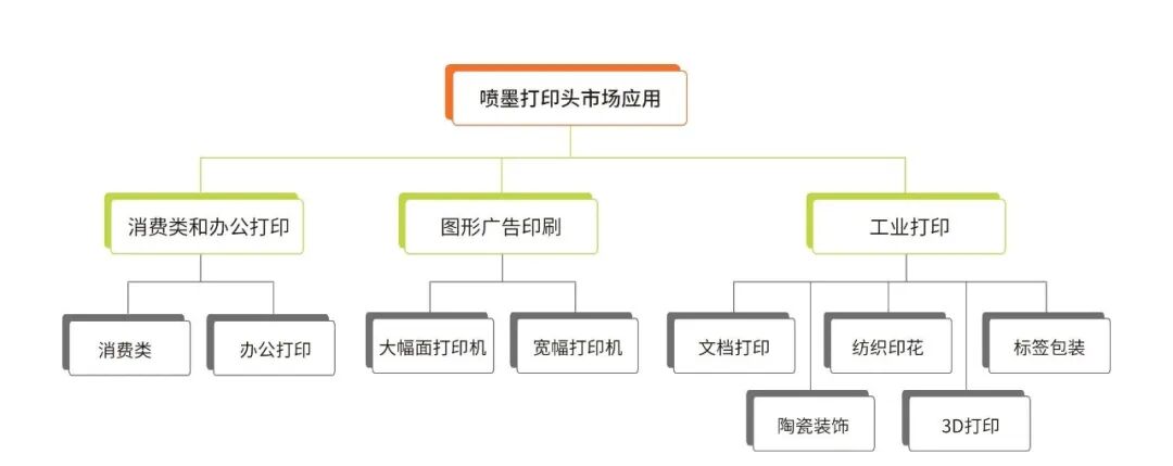 喷墨打印头应用领域主要包括消费类和办公打印、图形广告印刷以及工业打印。