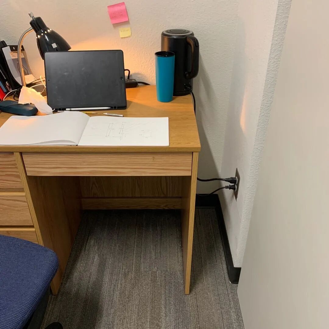 使用一段时间后暴露出了两个很明显的问题:虽然大部分迭层都是楞向受力,面板还是出现了明显的凹陷;使用柱子的设计虽然是为了底下还能放东西,但是使用过程中发现其实还是占了桌子的使用面积。