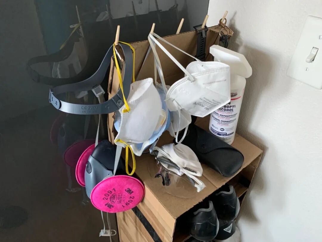 看起来就是个普通的鞋柜,其实每一格都是根据鞋的大小定制的。上方的五根筷子是我最引以为傲的设计,挂东西非常方便,尤其现在日常需要用口罩。