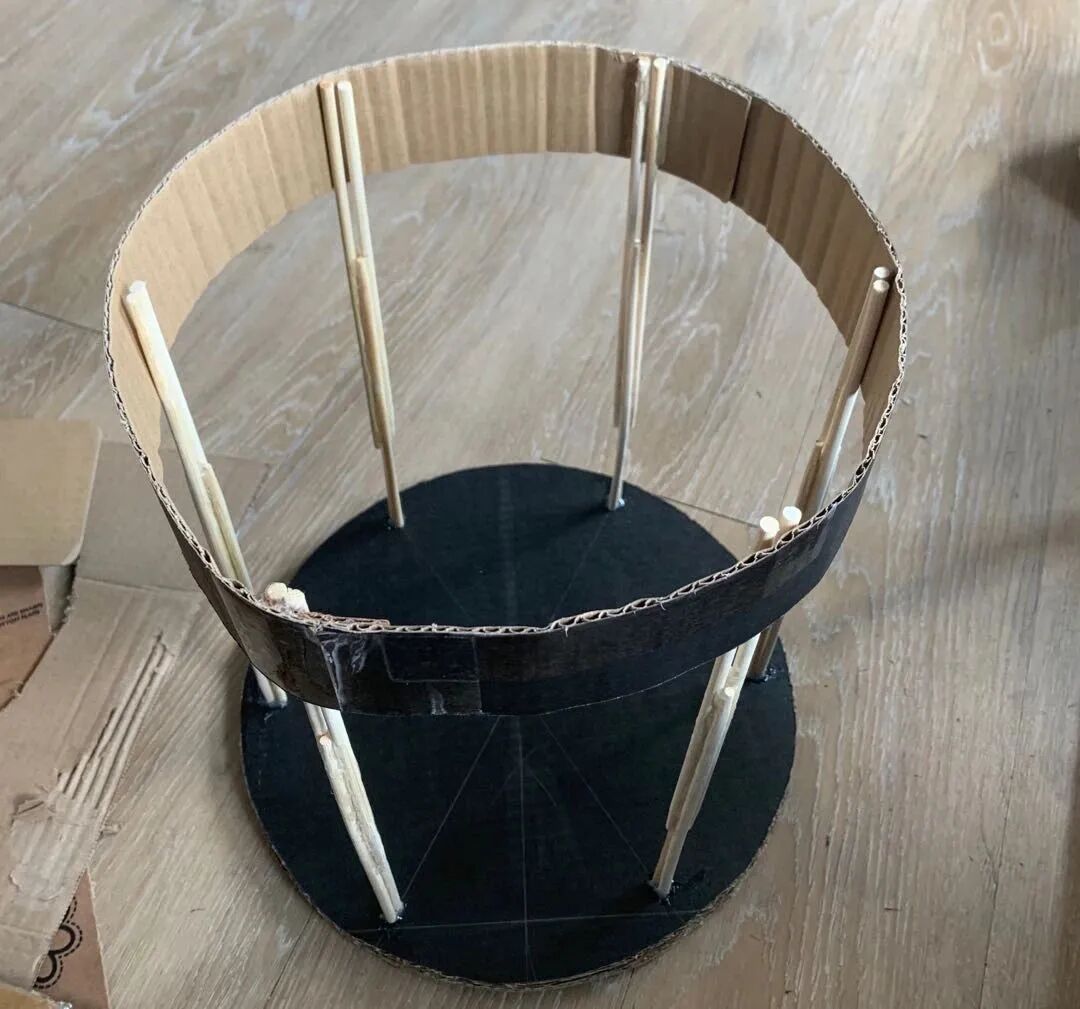 小圆圈是为了方便之后打洞,再插入一次性筷子,使小桌板具备旋转功能。像一次性筷子和其它稀有材料,我专门有一个盒子收集。这种高级材料可遇不可求,不知道以后何时会用得到。