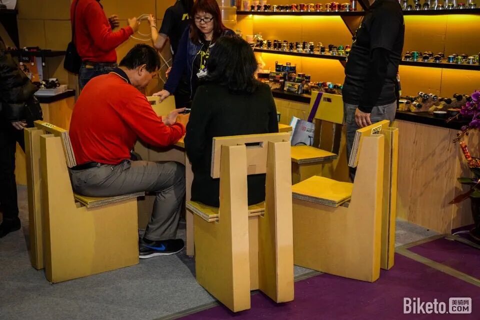 这张图片源于一个自行车展。可能是组委会为了把自行车与低碳生活联系起来,特意用纸板制作的椅子。这图我2016年3月3日就保存了,其实是想自己做一个,但是一直没有实施。