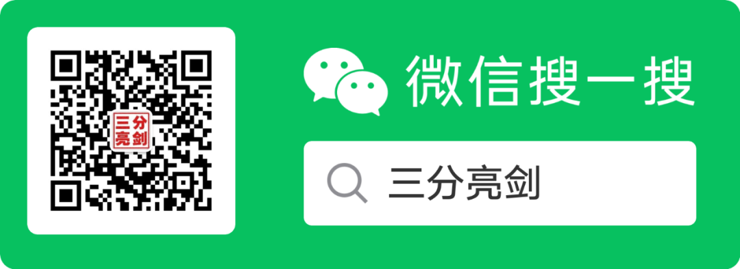 微信推送规则变更,若不想错失三分亮剑的大佬们,请点击顶部蓝字三分亮剑进入公众号主页,点击右上角…,将三分亮剑设为星标⭐️。