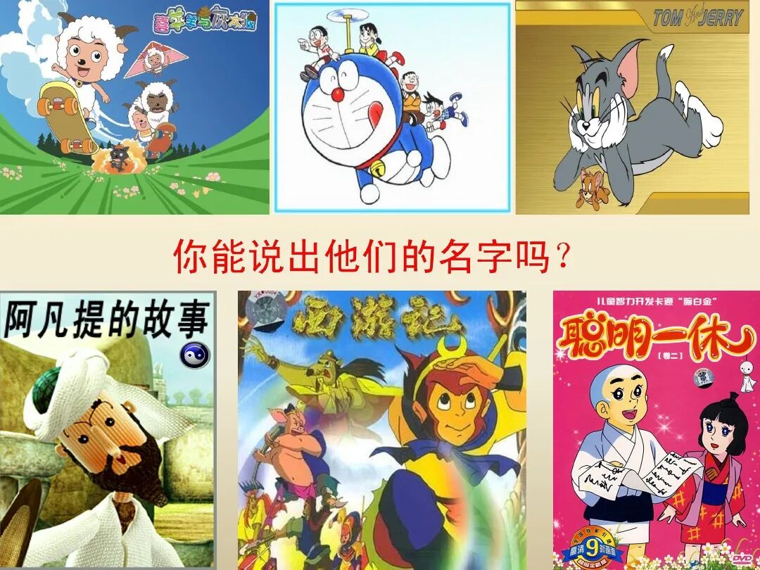 2、播放一组音乐,请同学们分辨出是哪部动画片里的音乐,并回答动画片里的主要人物是谁?