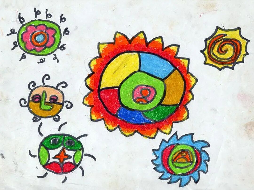 大家课下可以进行涂画联系,试着使用不同的色彩不同的绘画工具,就会产生不同的风格形式,美妙有趣。