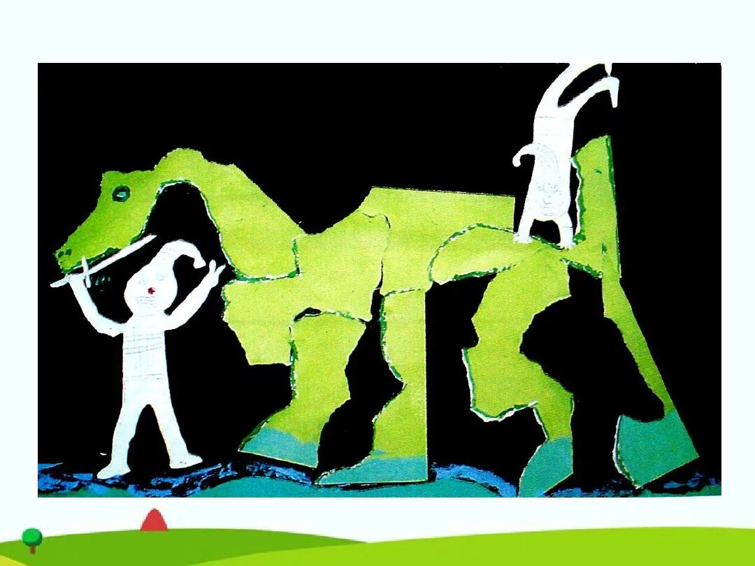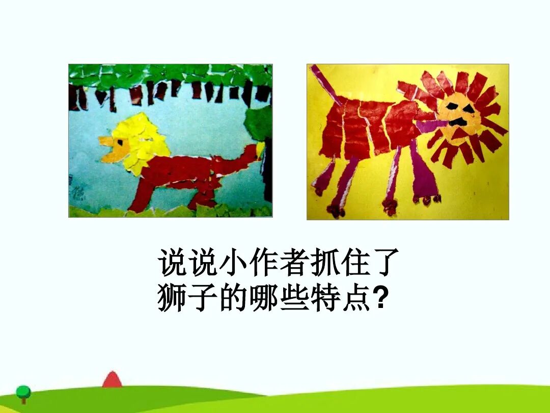 学生说,教师将学生描述的部分景色华在黑板上,形成动物园的景象,将制作好的作品粘到里面