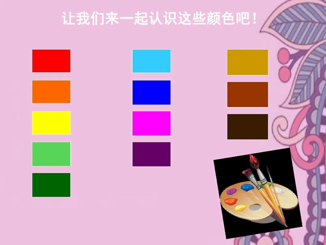 1.感受色彩世界的美丽,能够说出至少六种颜色的名称。