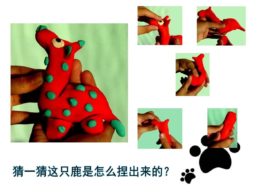 动物是我们的好朋友,瞧,它们多可爱,想不想把它们请到我们中间,和我们一起游戏,一起玩耍呢?(想)今天我们就来做自己喜欢的小动物,让它们站立起来,然后再做个漂亮的动物园,和它们一起游戏,好吗?板书:动物园。