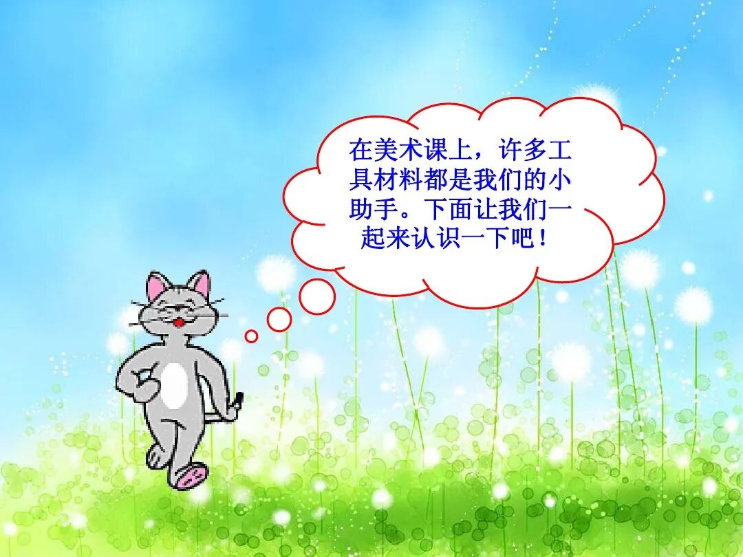 教学难点:让学生了解自己的小助手。教学重点:让学生了解美术有多种多样的表现形式,尝试用不同的工具材料画一画,再比较作品的效果有什么不同。