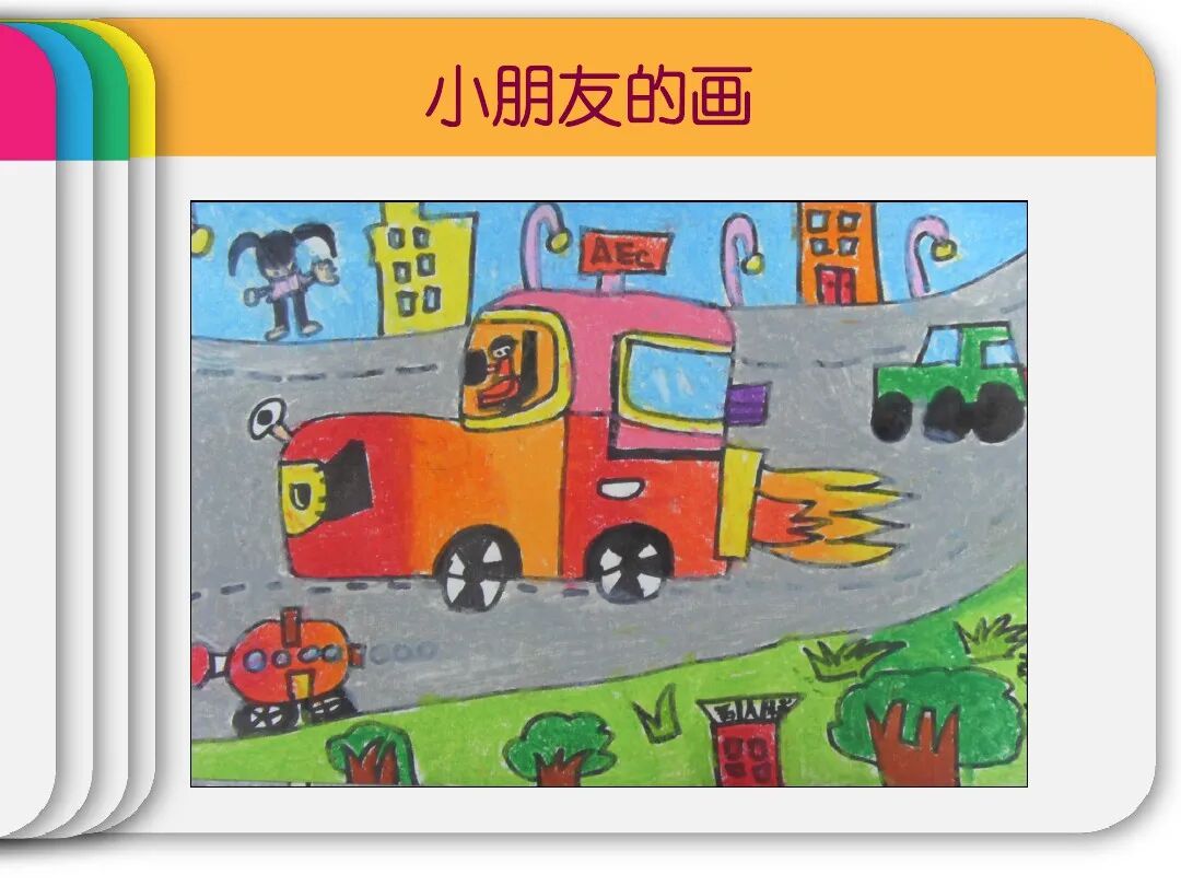 那么进行美术活动必须得需要一定的工具,这就是我们的小助手,想想我们的小助手都有哪些?我给大家准备了一些小朋友的美术作品,大家看看运用了哪些材料,我们的经常用到的小助手都有哪些?给大家说一说。