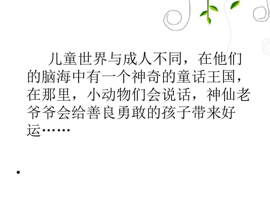 2、通过童话故事对学生进行分辨真善美和假恶丑的教育,从中发展学生对音乐的听觉和想象力,提高他们对音乐的理解能力。