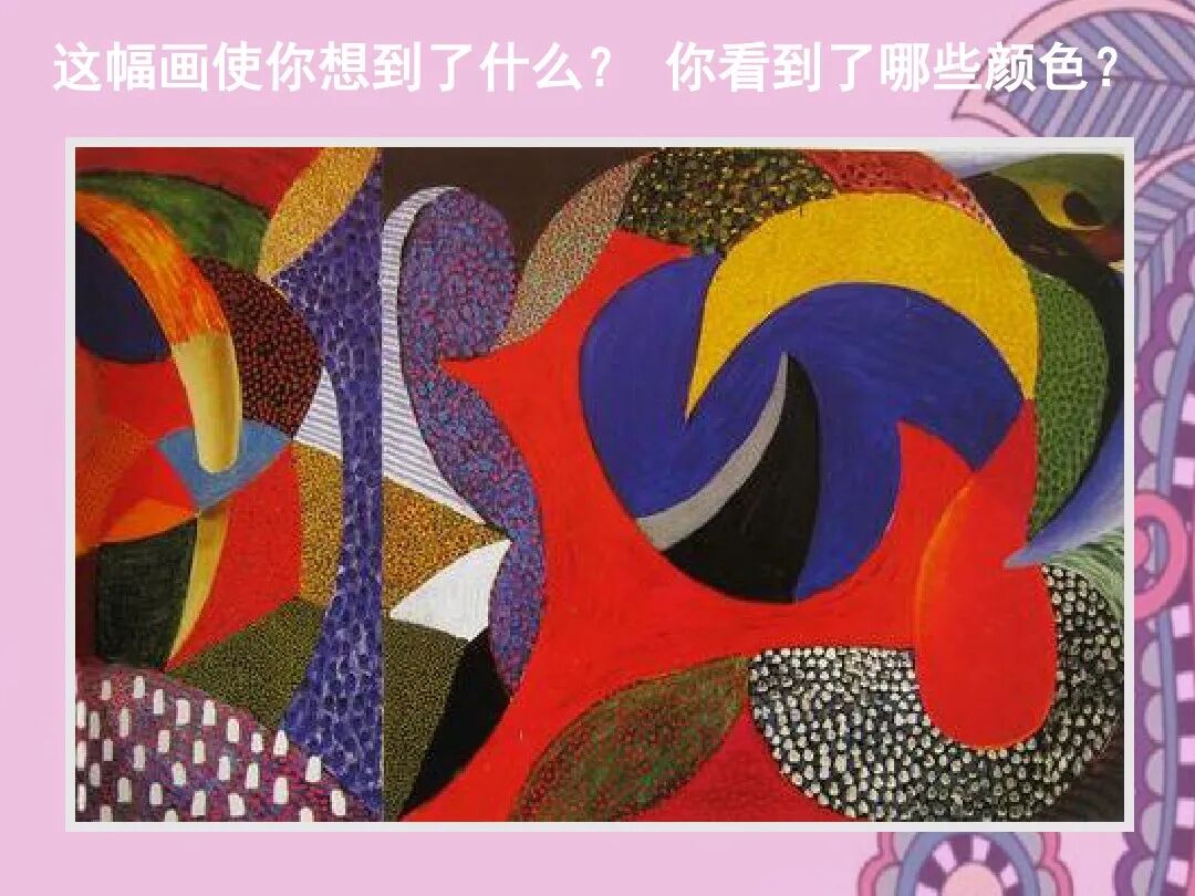 然后让学生欣赏《色彩的世界》,让学生们感受色彩世界的美丽,假如这个世界上没有了色彩你会感觉怎么样?,让学生由衷的感受到色彩的重要性,并为学生认识常用的颜色打下基础。
