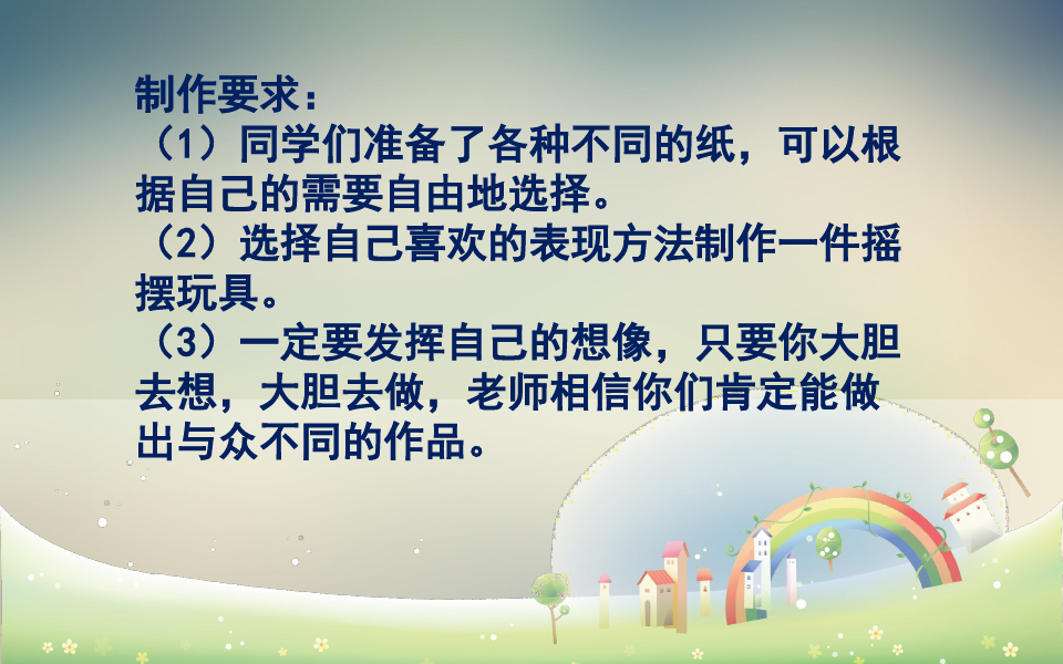 充分利用材料的特性,体验材料的美感,体验造型活动的乐趣。