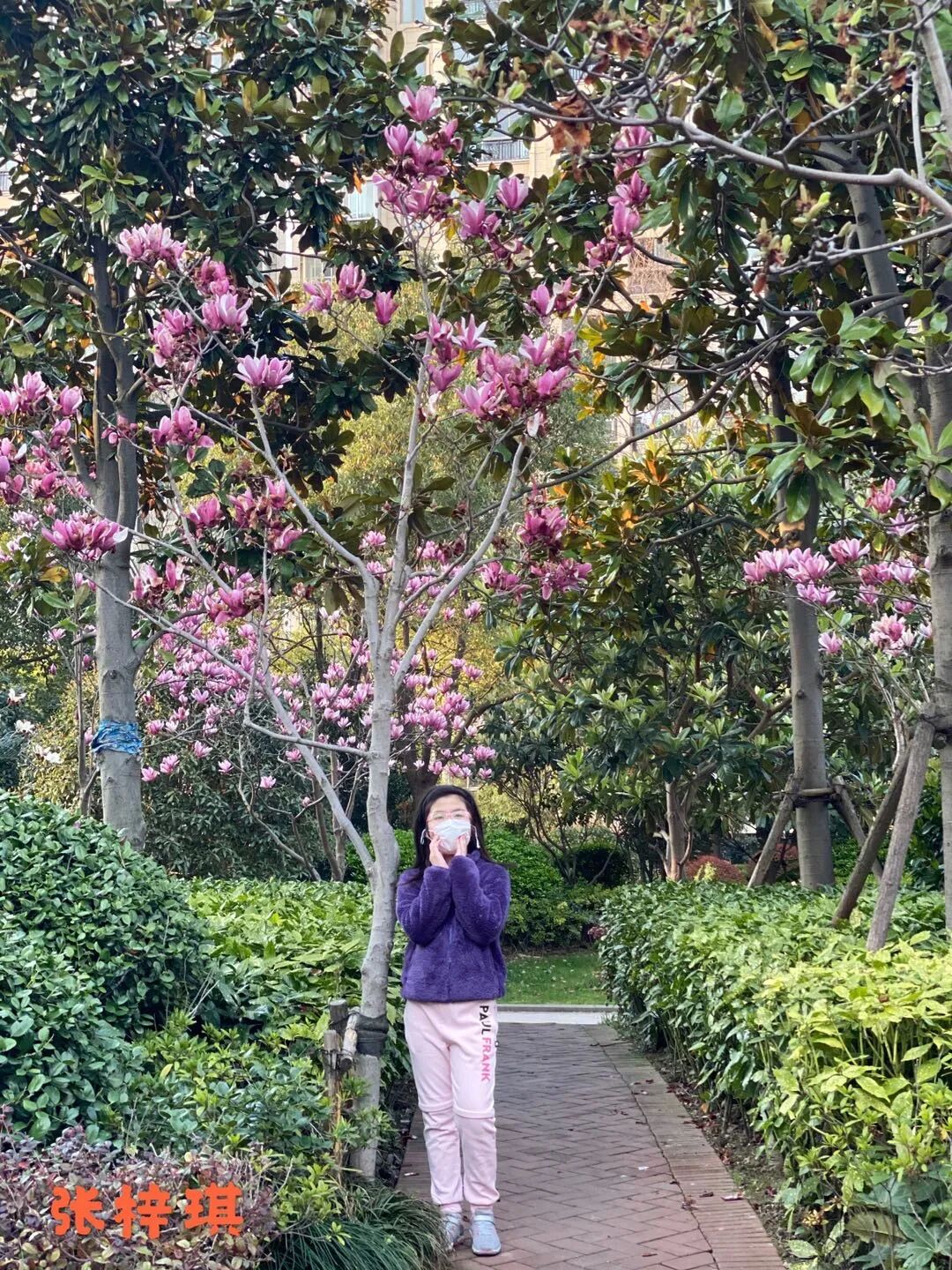 花坛的南面是玉兰道,道路两边种着一排排白玉兰。冬尽春来,光秃秃的白玉兰树枝上每天都在上演生命的律动,今天冒出了小小花蕾,过两天,花蕾鼓起来了,再过一天,雪白的白玉兰已经绽放笑颜。白玉兰美丽却不柔弱,花谢之后,片片绿叶又悄然登场,给我们带来的是蓬勃的朝气,难怪它会成为上海的市花。晚饭之后,我总会陪着妈妈到玉兰道上走一走,跟妈妈聊聊学校里发生的趣事,我们的笑声洒满了小道。