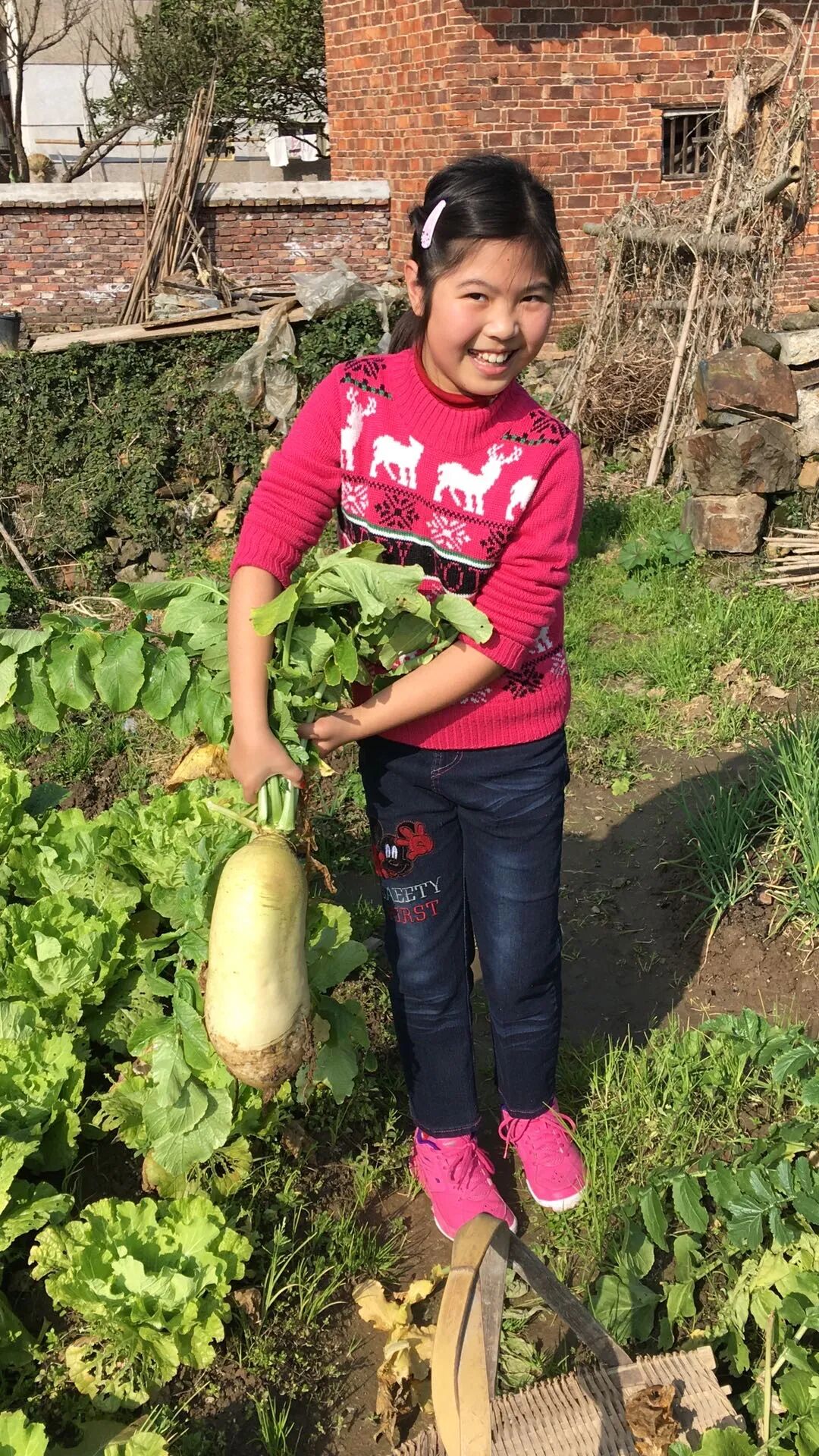 每次到舅公家,我都心心念念要去拔萝卜。我迫不及待地跑到萝卜地里,寻找着又大又胖的萝卜。萝卜叶长得非常茂盛,白白胖胖的萝卜就躲在下面,但怎样也躲不过我的火眼金睛。没过一会儿,我就找到了一个大萝卜,我兴奋的喊道:我找到你了!我蹲下身子,双手抓住萝卜的叶子,使劲儿往上一拔,萝卜就这样被我整个儿拔上来了。哇,起码有三斤呢!看着战利品,我笑了,开心地说道:我的了!我拎着大萝卜放到竹篮里,又再去拔了几个。之后,我就费劲地拎着装满大萝卜的竹篮来到压水井边。说是洗手、洗萝卜,其实我就是特别喜欢压水玩。我上下使劲地压动手柄,井水都已经装满一大盆了还不想停,仿佛丝毫不觉得累,那一刻,好像连空气都是快乐的了……