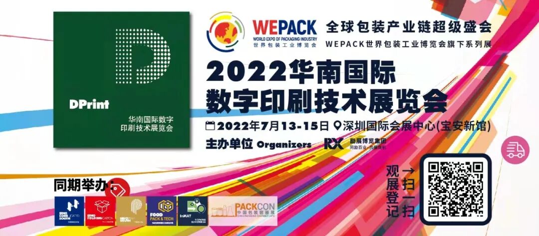 2022年7月13-15日,WEPACK世界包装工业博览会旗下包装系列展-2022 华南国际数字印刷技术展览会将在深圳国际会展中心(宝安新展馆)盛大开幕!