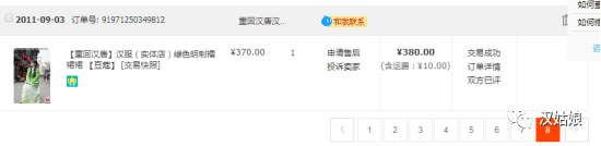 (2011年9月3日,这是我的淘宝购物记录页面里的最后一页的最后一条信息,它记录着我的第一次成功进行的网购经历。)
