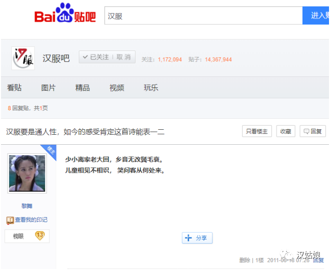 (我在百度汉服吧里发表的最早的两个帖子)