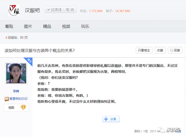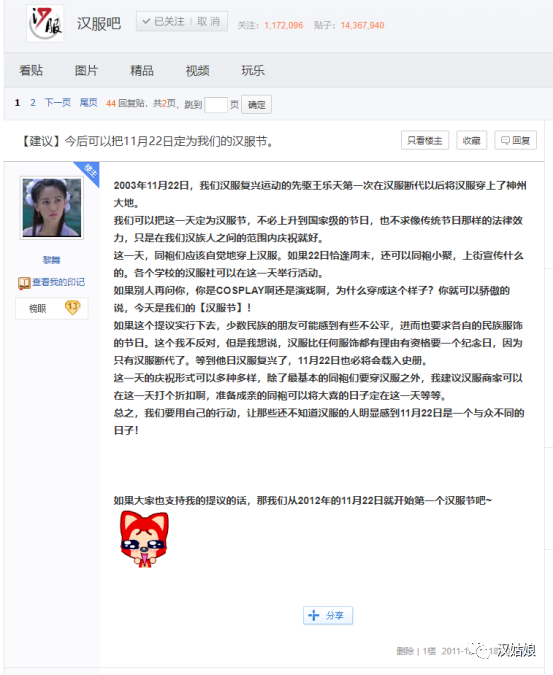 我把这个想法发在了汉服吧里,也看到了一些比较合理的反对意见,因为一个人的号召力有限,后来也就逐渐淡忘了,以至于我都不记得自己曾经还发过这个帖子。