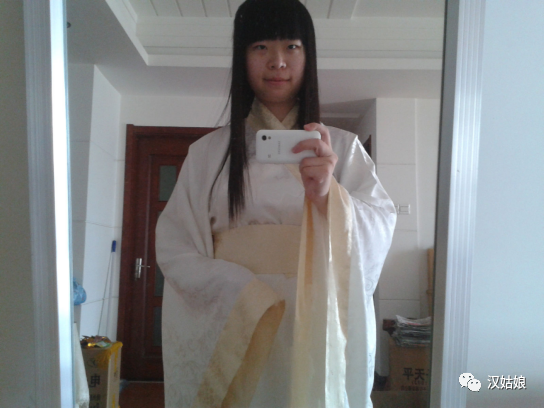 (2011年8月,我终于赶在18岁结束之前穿上了人生第一套正规汉服:之前从重回汉唐文殊坊实体店订的五套汉服其中的黄白直裾)